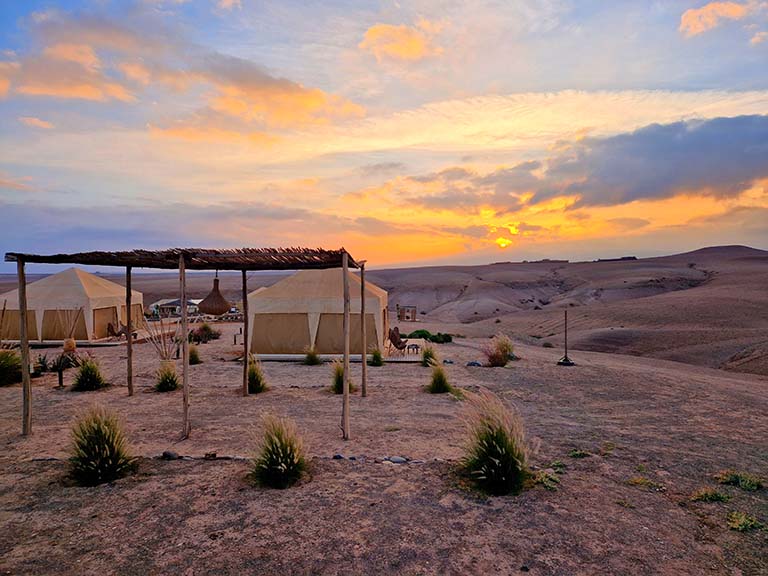 - 1 Übernachtung im Luxus-Wüstenzelt der Agafay Wüste inkl. Halbpension, Lagerfeuer & Gesang